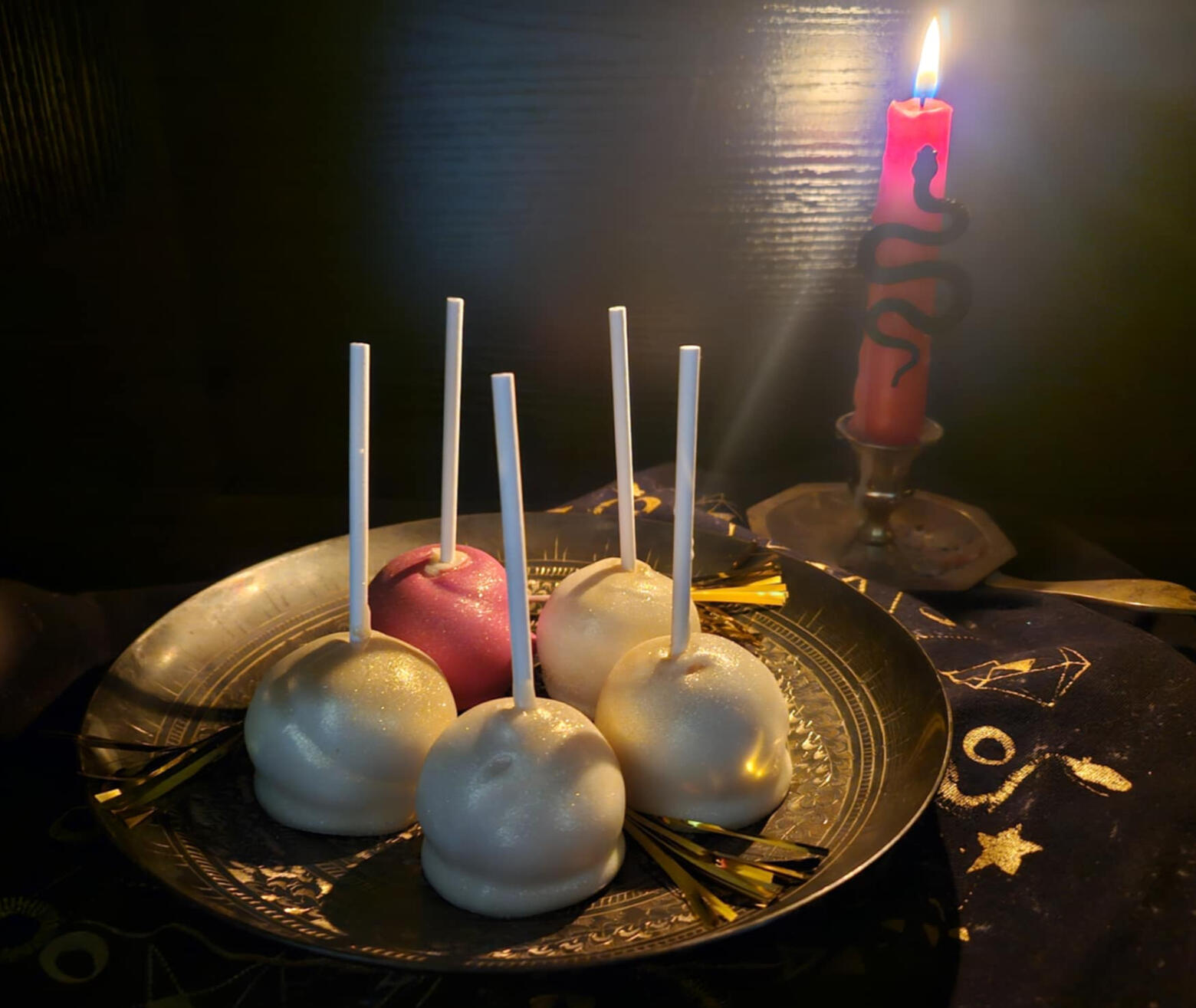 Lunar New Year Champagne Cake PopsCelebrate the Year of the Snake with some champagne cake pops! A champagne cake base mixed with vanilla frosting and coated with white chocolate and edible gold glitter!6 copper a piece