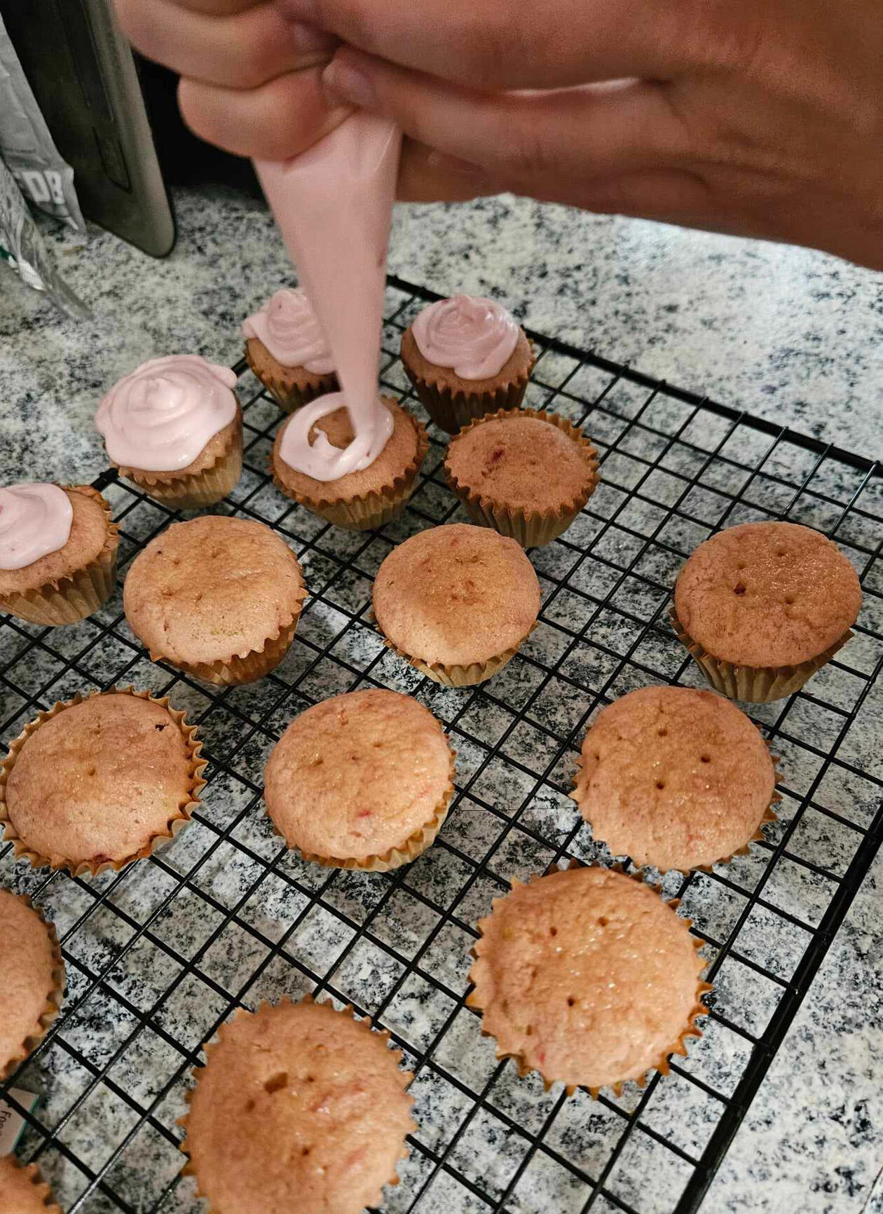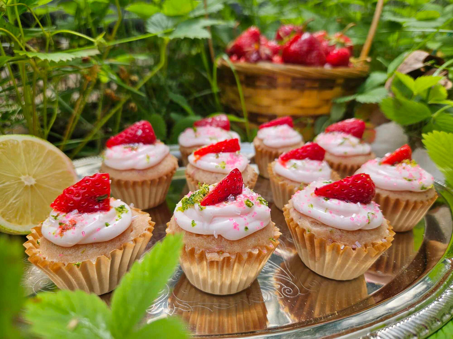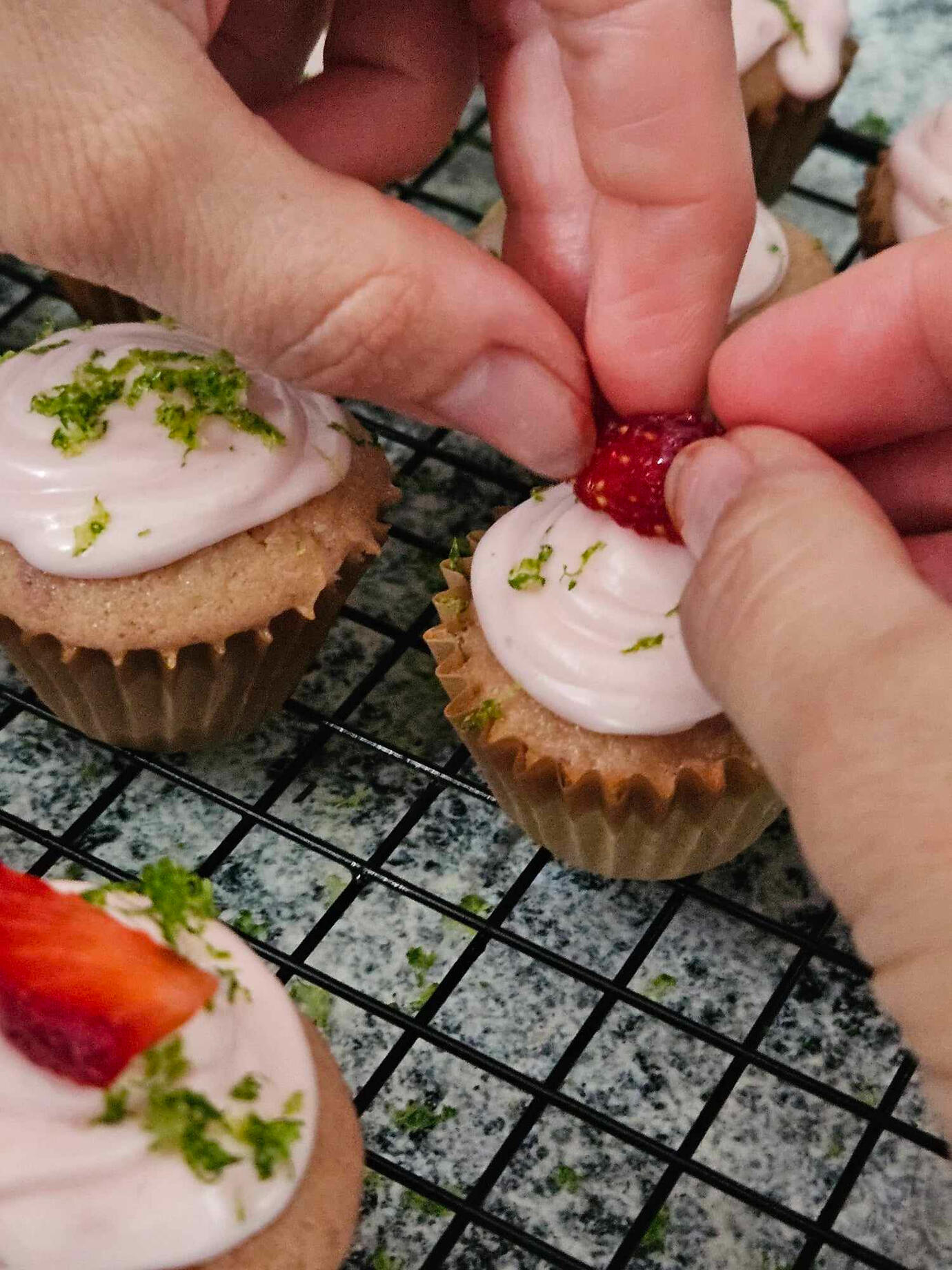 Strawberry Margarita Mini CupcakesA strawberry cake base soaked with tequila simple syrup, strawberry and tequila cream cheese frosting, and the top sprinkled in lime zest and pink sugar like the rim of a margarita glass.5 copper a piece
