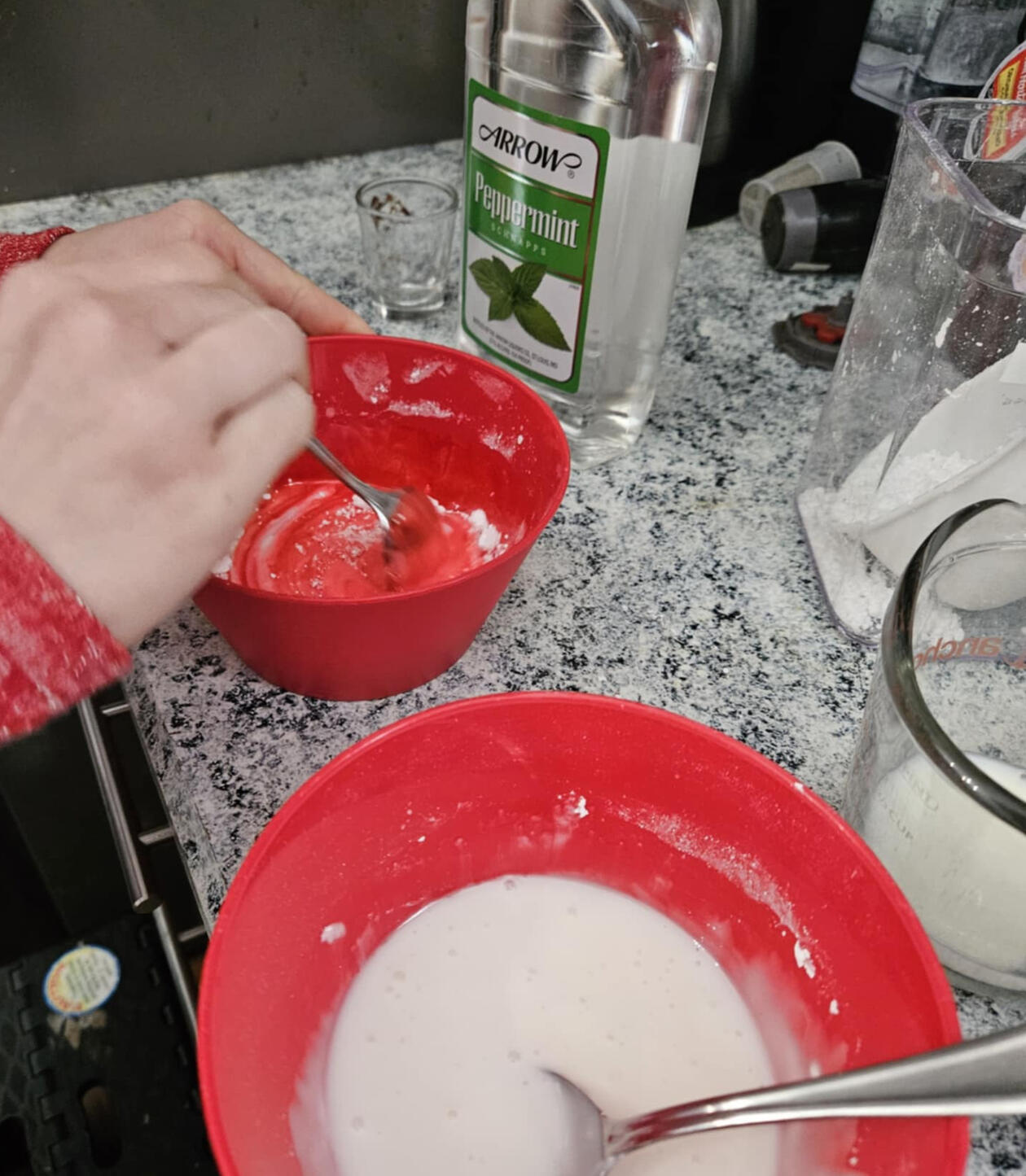 Wintersday BrowniesRich chocolate brownies elevated with a splash of coffee liqueur. Topped with a glaze made out of nothing but sugar and peppermint spirit liquor. (And natural, safe-to-eat dye.) They're boozy, pepperminty, and full of WINTERSDAY SPIRIT!6 copper per piece