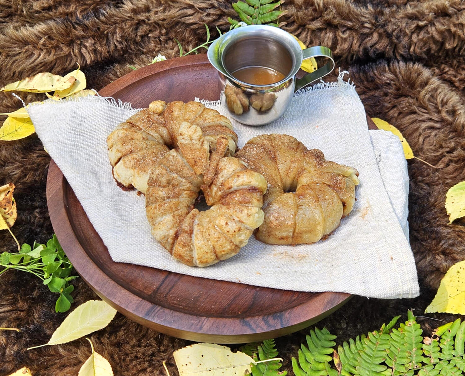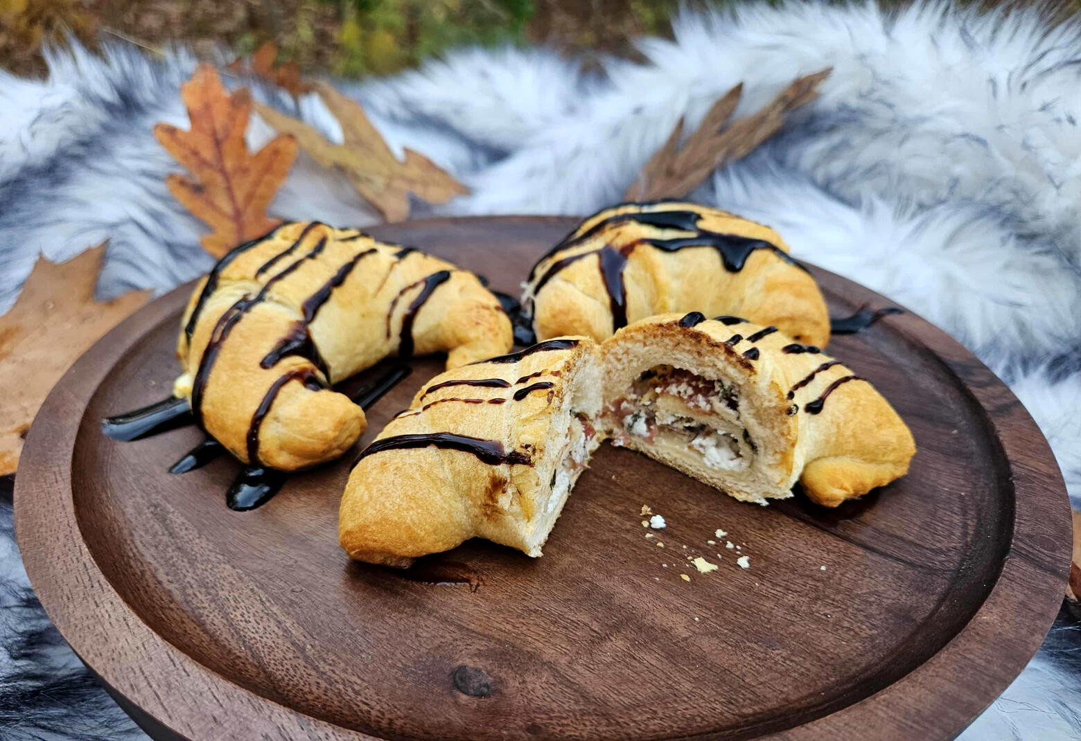 This roll was specially crafted to compliment their new Moonlight's Chapter Blueberry Mead!A buttery crescent roll stuffed with goat cheese, thyme, and crispy prosciutto and drizzled with balsamic glaze. This savory roll is best eaten between sips of blueberry mead so all the flavors meld together.